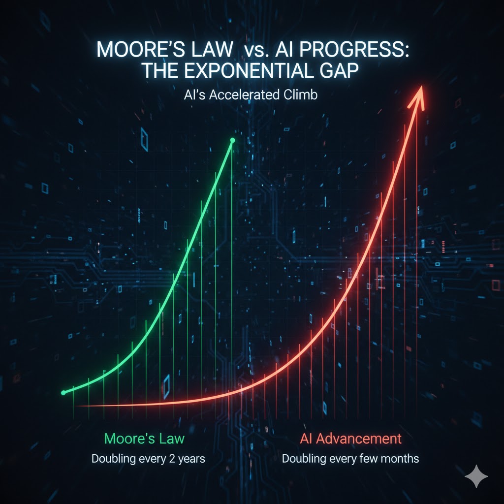 지수적 발전: AI 성능은 무어의 법칙을 뛰어넘는 속도로 향상되고 있습니다.